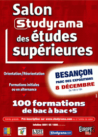 LE SALON STUDYRAMA DES ETUDES SUPERIEURES DE BESANCON PERMETTRA AUX VISITEURS DE S'INFORMER SUR LES DIVERSES POSSIBILITES D'ORIENTATION, DE REORIENTATION OU ENCORE DE POURSUITE D'ETUDES.