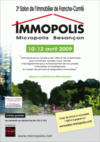 Pour cette 3e édition, Immopolis, le salon de l’immobilier, à Micropolis Besançon, vous propose, sur 3 000 m², du 10 au 12 avril 2009, un lieu de rencontres, d’informations et d’échanges privilégiés avec 50 professionnels de Franche-Comté. Dans le contexte actuel, Immopolis se veut un lieu pour qualifier et accompagner votre projet. L'entrée est gratuite.