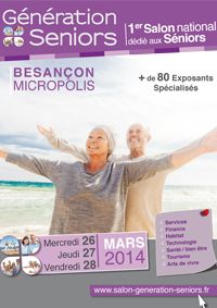 mer. 26/03/2014 - 01:00 - ven. 28/03/2014 - 01:00 2014-03-26 00:00:00 2014-03-28 00:00:00 Europe/Paris SALON GENERATION SENIORS Réunir dans un même lieu les 50 ans et plus: préparer leur retraite active ! Permettre aux entreprises de se positionner sur une nouvelle cible dis... Micropolis - 3 Boulevard Ouest 25000 Besançon ACTION EVENTr contact@salon-generation-seniors.fr