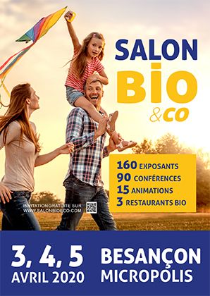 ven. 03/04/2020 - 10:00 - dim. 05/04/2020 - 19:00 2020-04-03 09:00:00 2020-04-05 18:00:00 Europe/Paris Salon Bio & Co // ANNULÉ non reporté // 160 exposants régionaux et nationaux . 12 Animations (jeux d'enfants, ateliers cuisine, osier, fabrication meubles en carton, massages, compostage) .... Micropolis - 3 Boulevard Ouest 25000 Besançon BIO & COr salonbioeco@wanadoo.fr