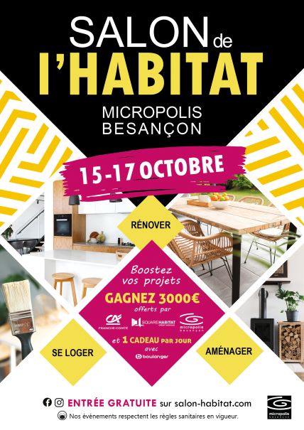 Nous vous donnons rendez-vous au Salon de l'Habitat du 15 au 17 octobre 2021 à Micropolis Besançon pour rencontrer un grand nombre de professionnels qui pourront vous conseiller en immobilier, rénovation, agencement, ameublement et également vous guider concernant le financement de vos achats...