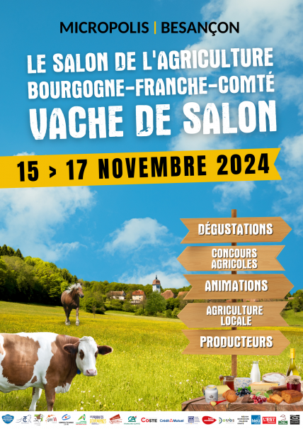 ven. 15/11/2024 - 11:00 - dim. 17/11/2024 - 17:00 2024-11-15 10:00:00 2024-11-17 16:00:00 Europe/Paris Vache de Salon L'événement incontournable de la vache Montbéliarde et du cheval de Trait Comtois : VACHE DE SALON revient à Besançon Micropolis du 15 au 17 nove... Micropolis - 3 Boulevard Ouest 25000 Besançon Association Doubs Terre d'Elevager gmillot.pro@gmail.com