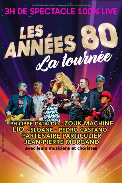 ZOUK MACHINE, PEDRO CASTANO, LIO, JEAN-PIERRE MORGAND, SLOANE, PARTENAIRE PARTICULIER et PHILIPPE CATALDO sont réunis sur scène pour vous faire revivre en live leurs plus grands tubes des années 80 que vous connaissez tous.